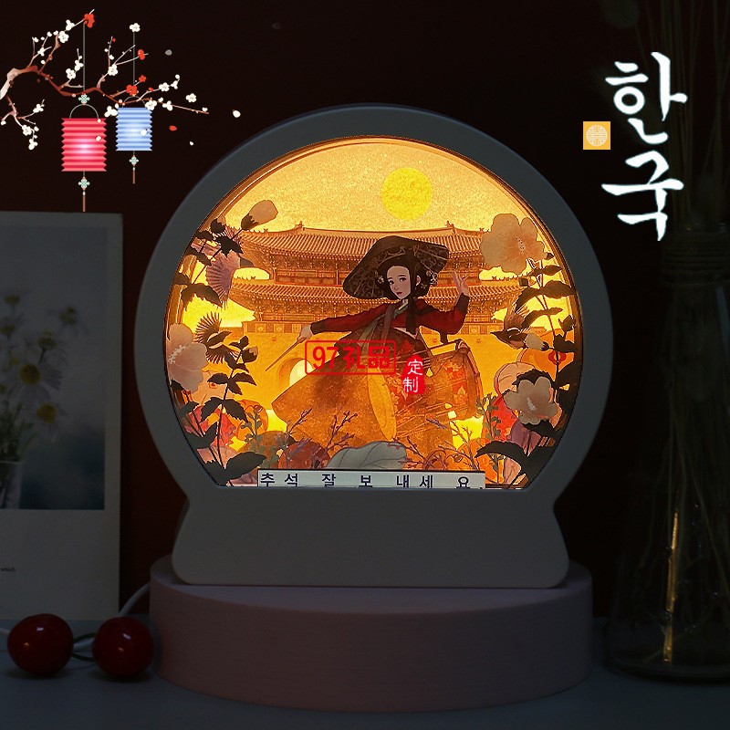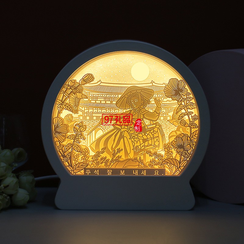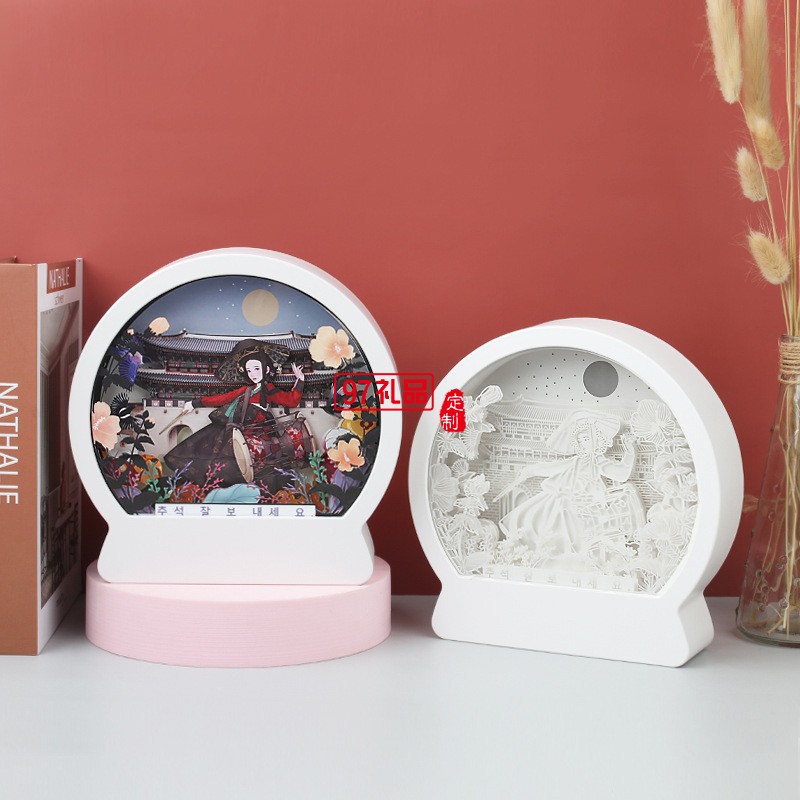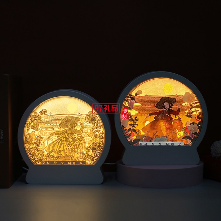 韓國中秋紙雕燈 韓式節日立體紙質工藝禮品 臥室床頭小夜燈定制
