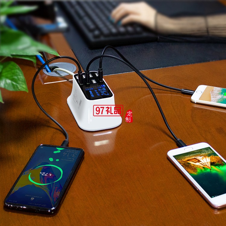 智能多口usb手機充電器 8口USB液晶適配器定制公司廣告禮品