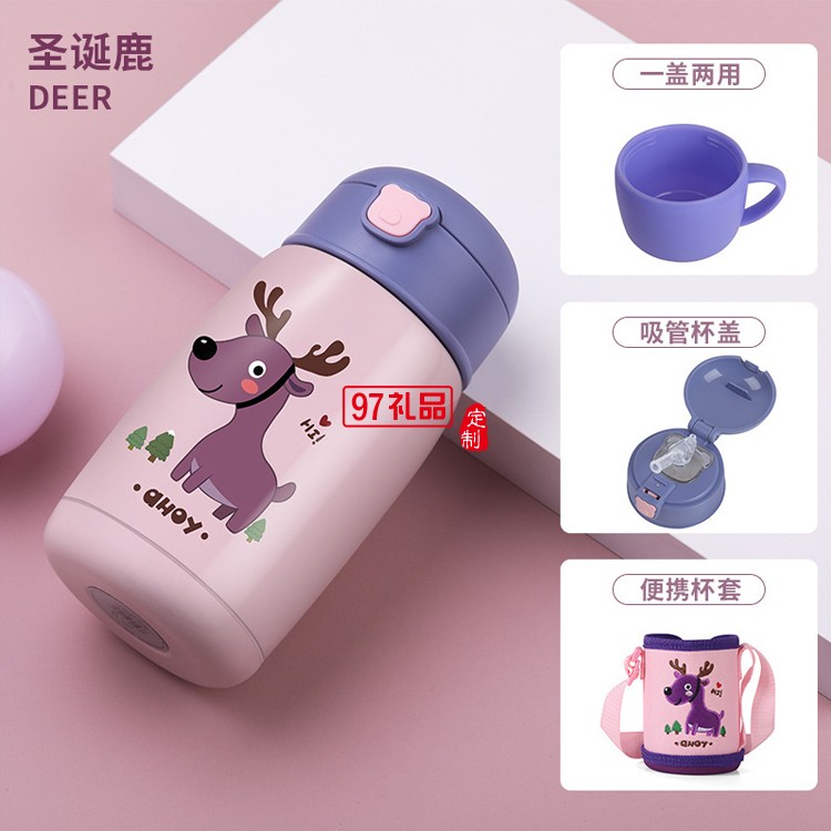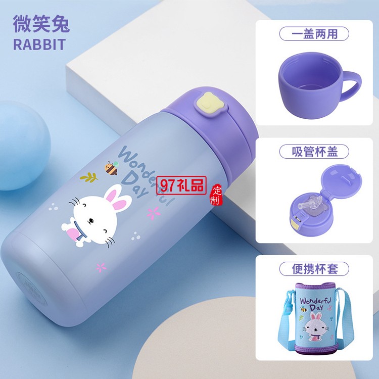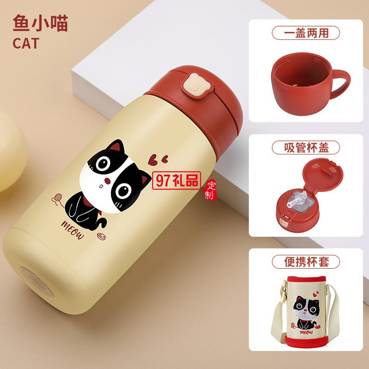 兒童保溫杯帶吸管304不銹鋼兩用便攜水杯送客戶禮品