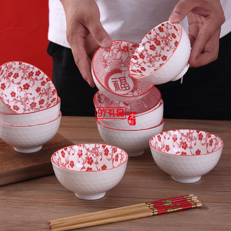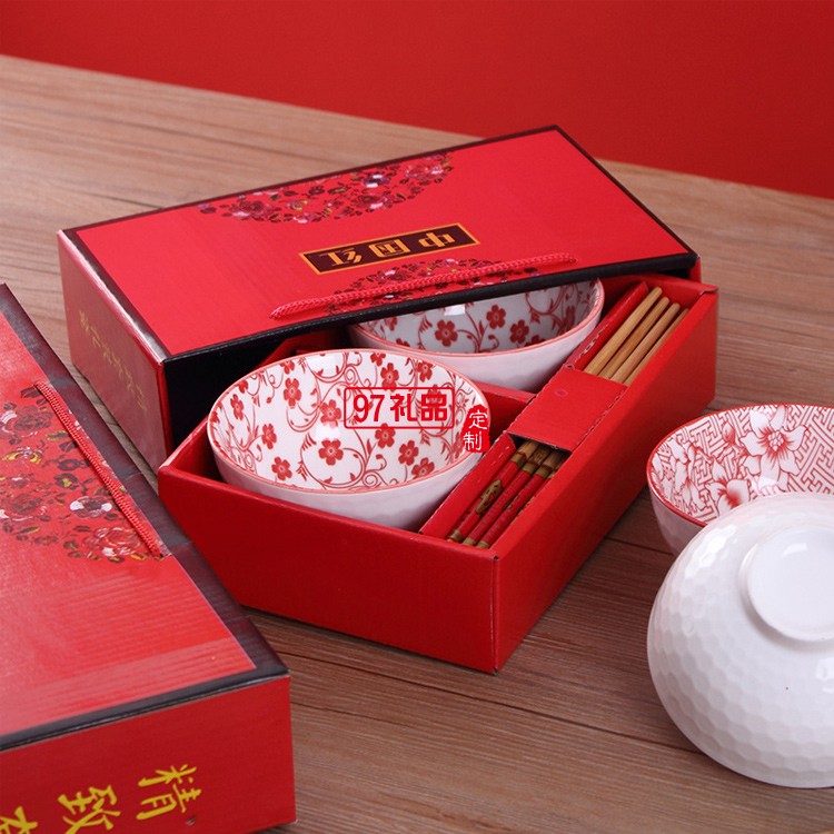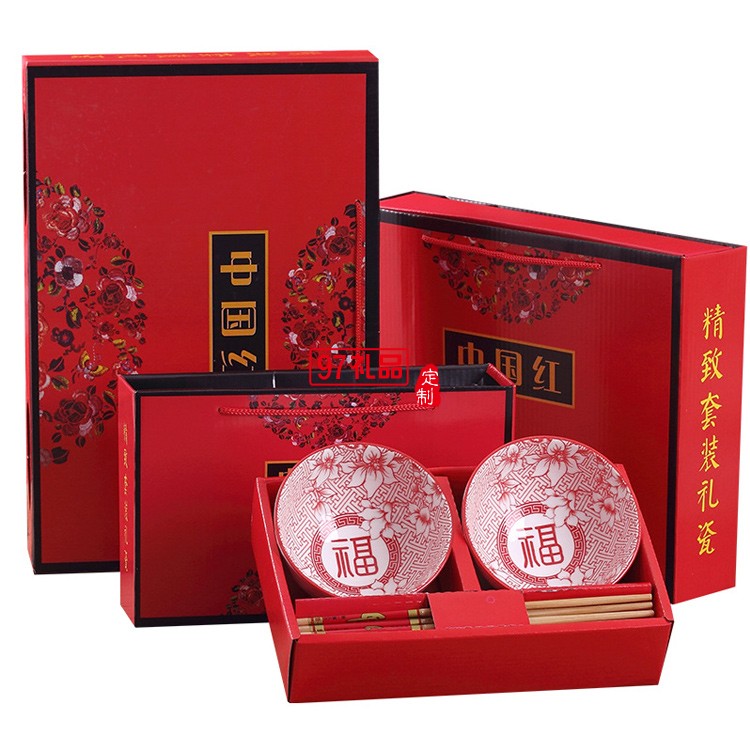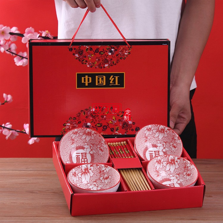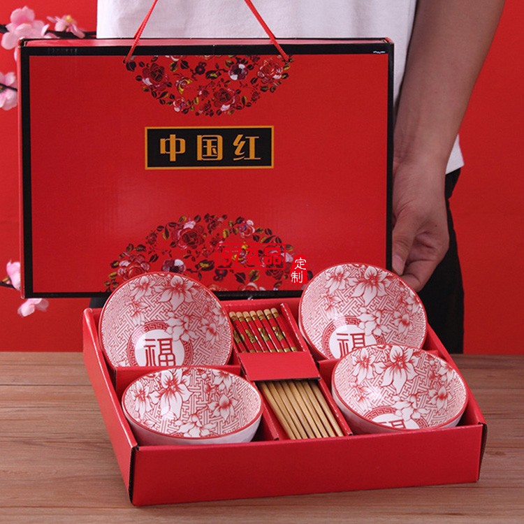 中國紅陶瓷禮品碗筷套裝餐具創(chuàng)意陶瓷碗盤套裝公司廣告禮品定制