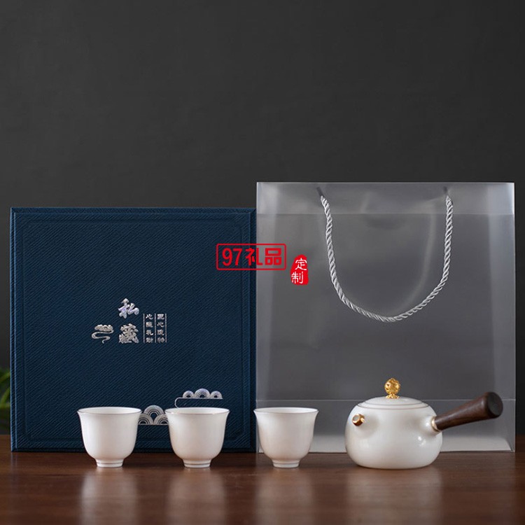 高檔白羊脂玉陶瓷茶具商務送禮客戶回饋房地產禮品 可定制logo