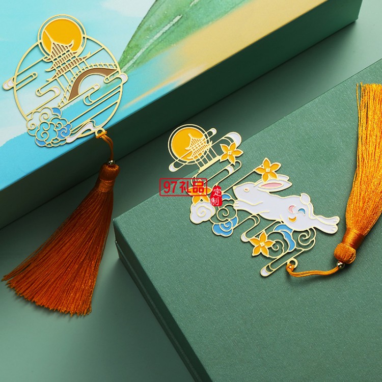 金屬書簽 中秋書簽創意設計兔子款廣寒宮款書簽送人小禮品定制