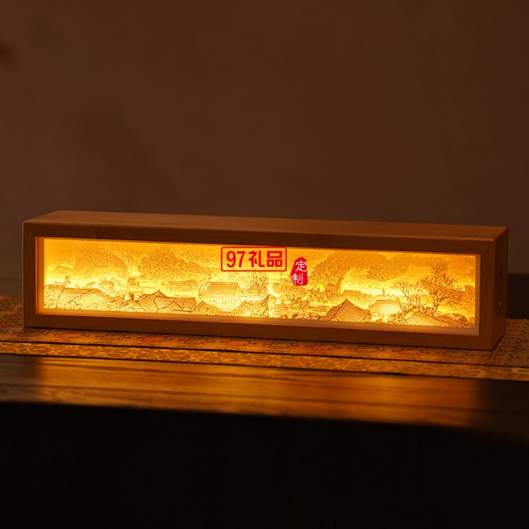 竹盒紙雕燈x1,手提袋x1