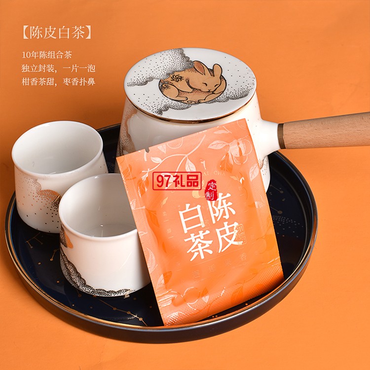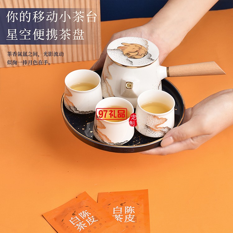 茶具:羊脂玉瓷,手把壺*1、圓碟*1、茶葉罐*1、茶杯*4