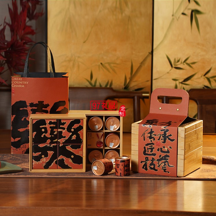 雙層竹盒x1,手提袋x1,荒野紅茶x3