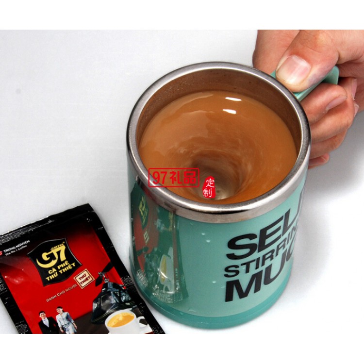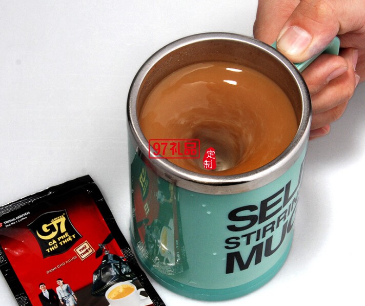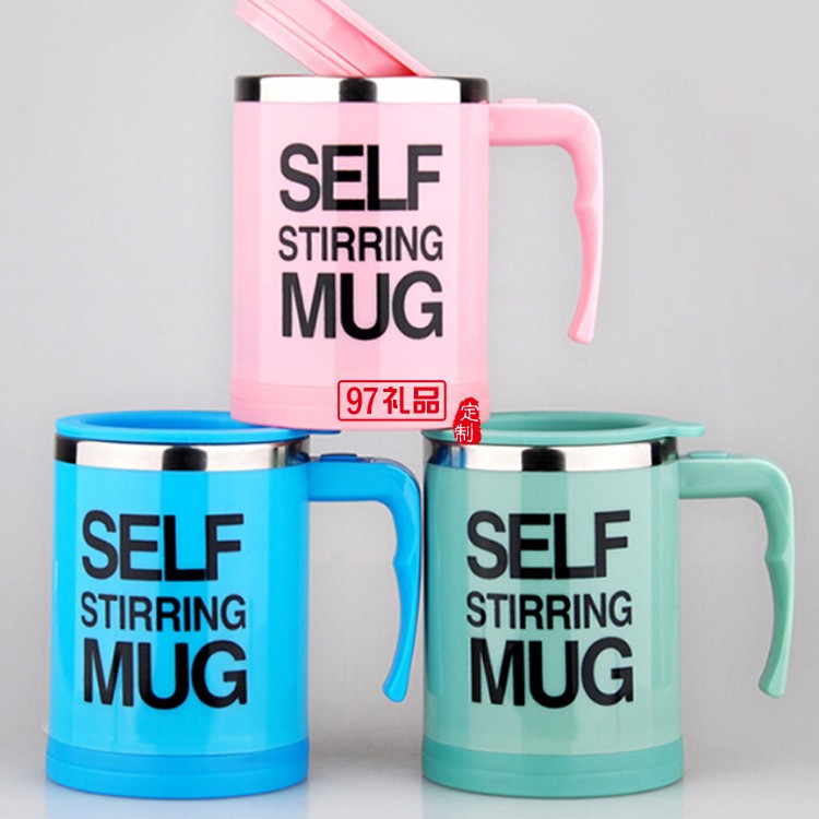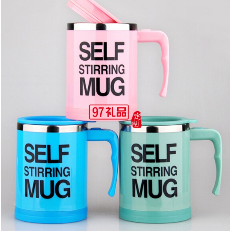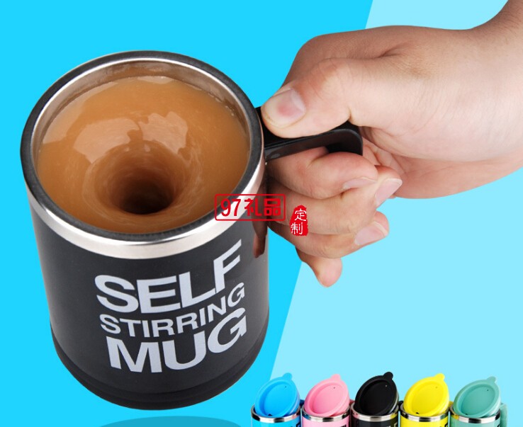 歐式不銹鋼內膽咖啡奶茶牛奶杯懶人自動攪拌杯定制公司廣告禮品