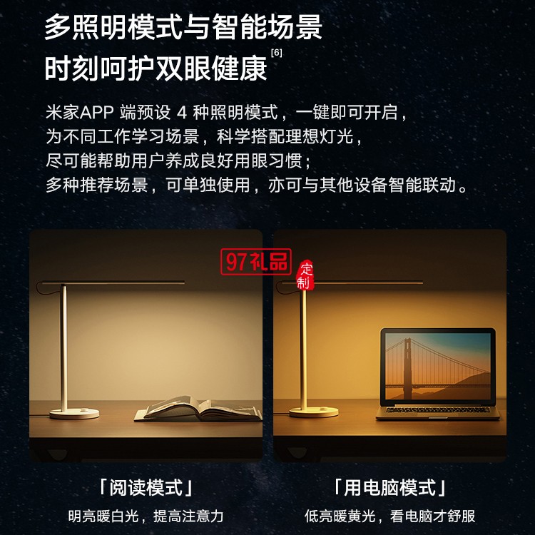 米家LED智能臺燈1S 臥室家用學生書桌折疊簡約床頭燈定制公司廣告禮品