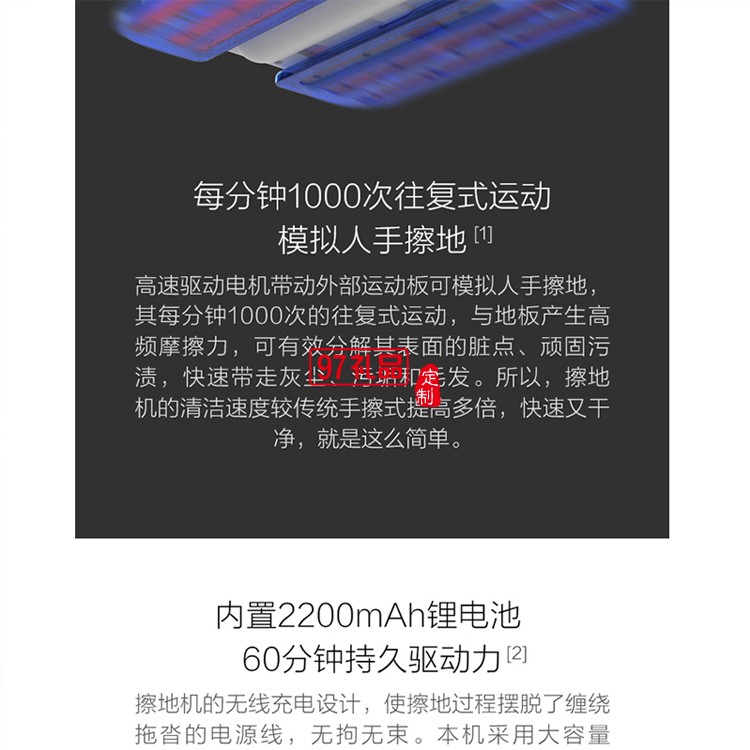 分鐘擦地1000次 / 無線操控 / 扇形水霧噴水干 濕一體 / 觸靠式充電樁
