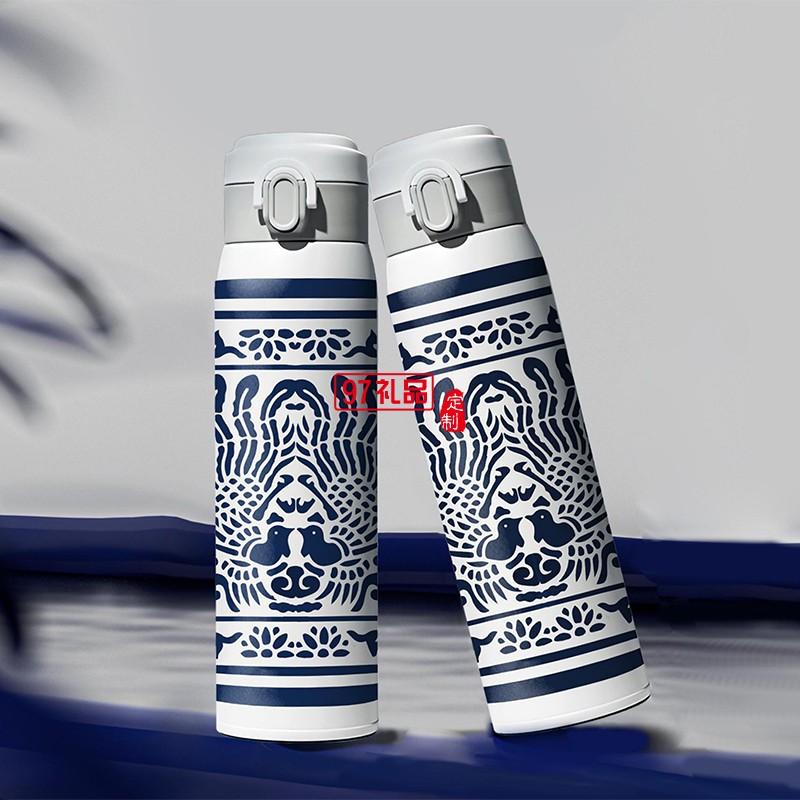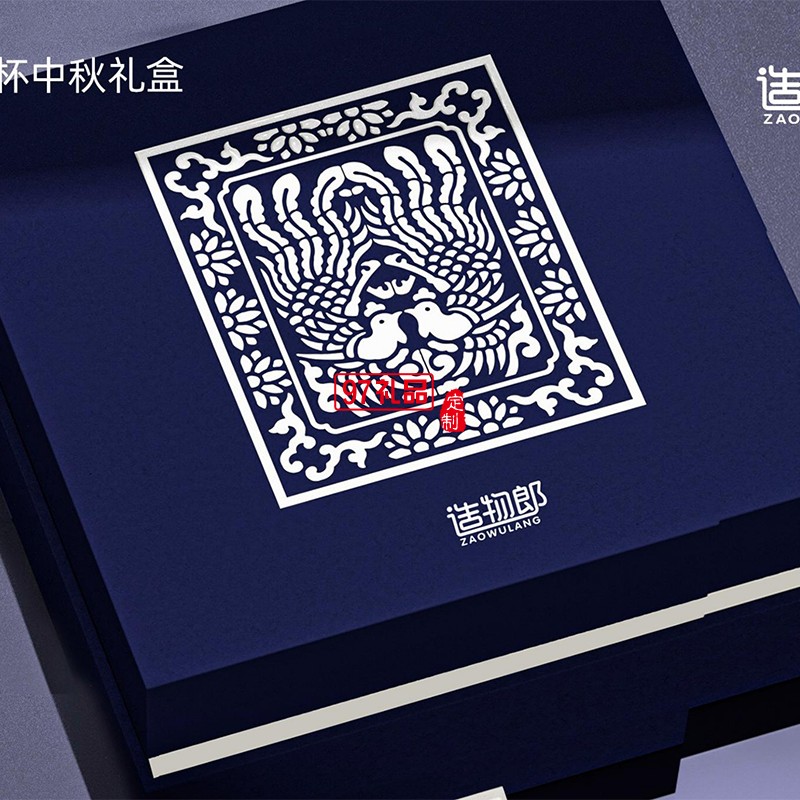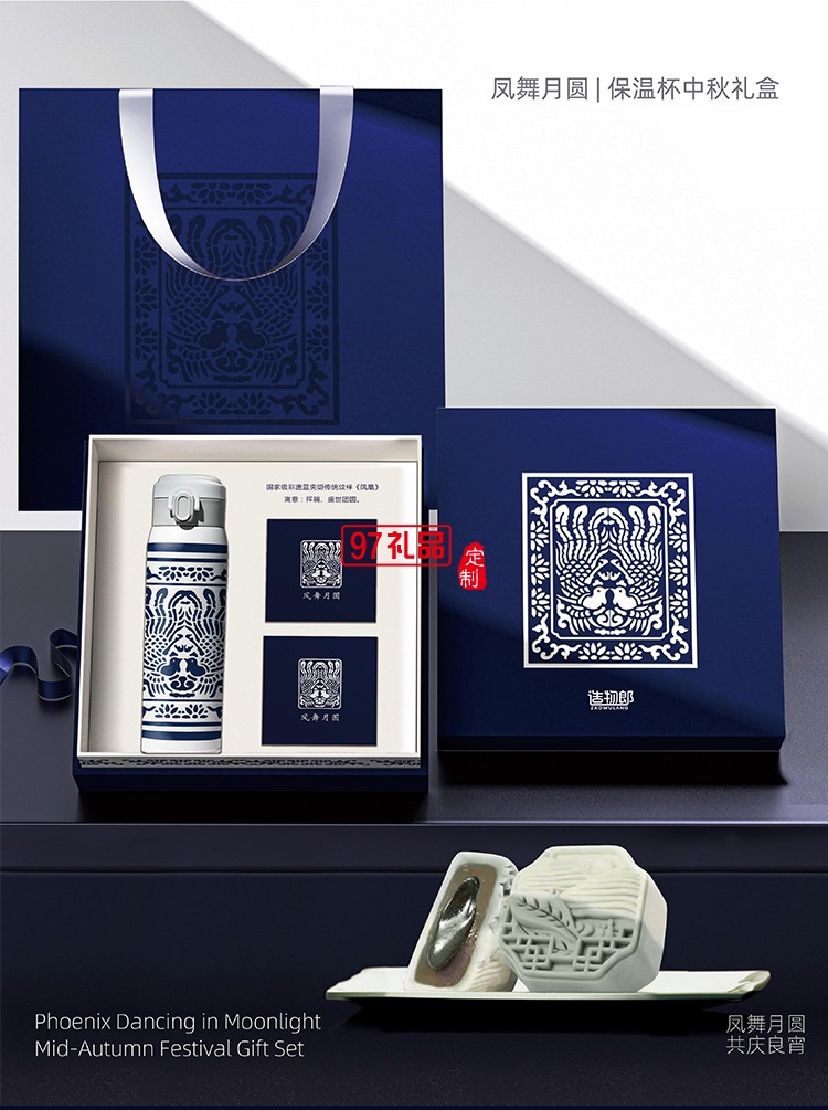 鳳舞月圓青花瓷圖案保溫杯月餅中秋禮盒