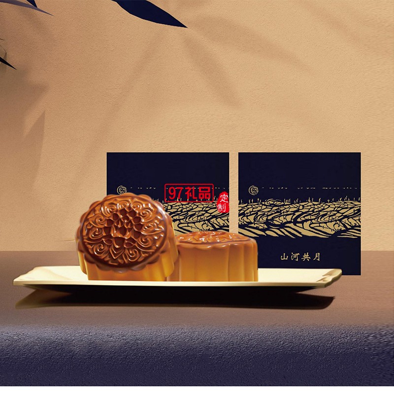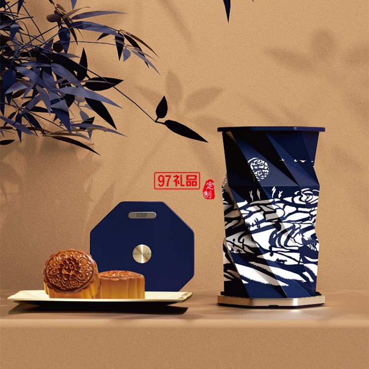 山河共月旋轉燈月餅定制高檔中秋禮盒