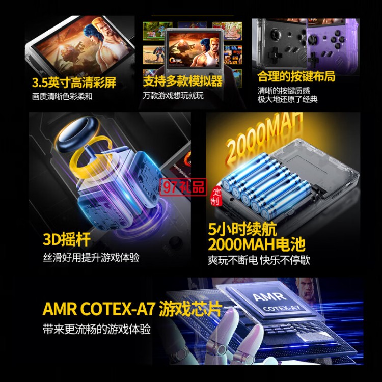 單搖桿3.5寸2.5D IPS 320*480 2000毫安 支持10大模擬器 內存64G/128G