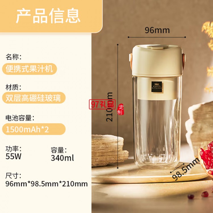 康寧榨汁機 充電果汁杯雙層玻璃杯身